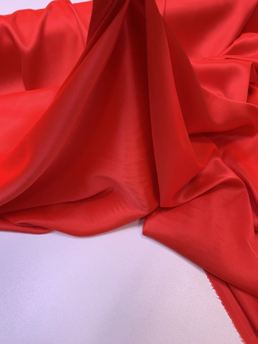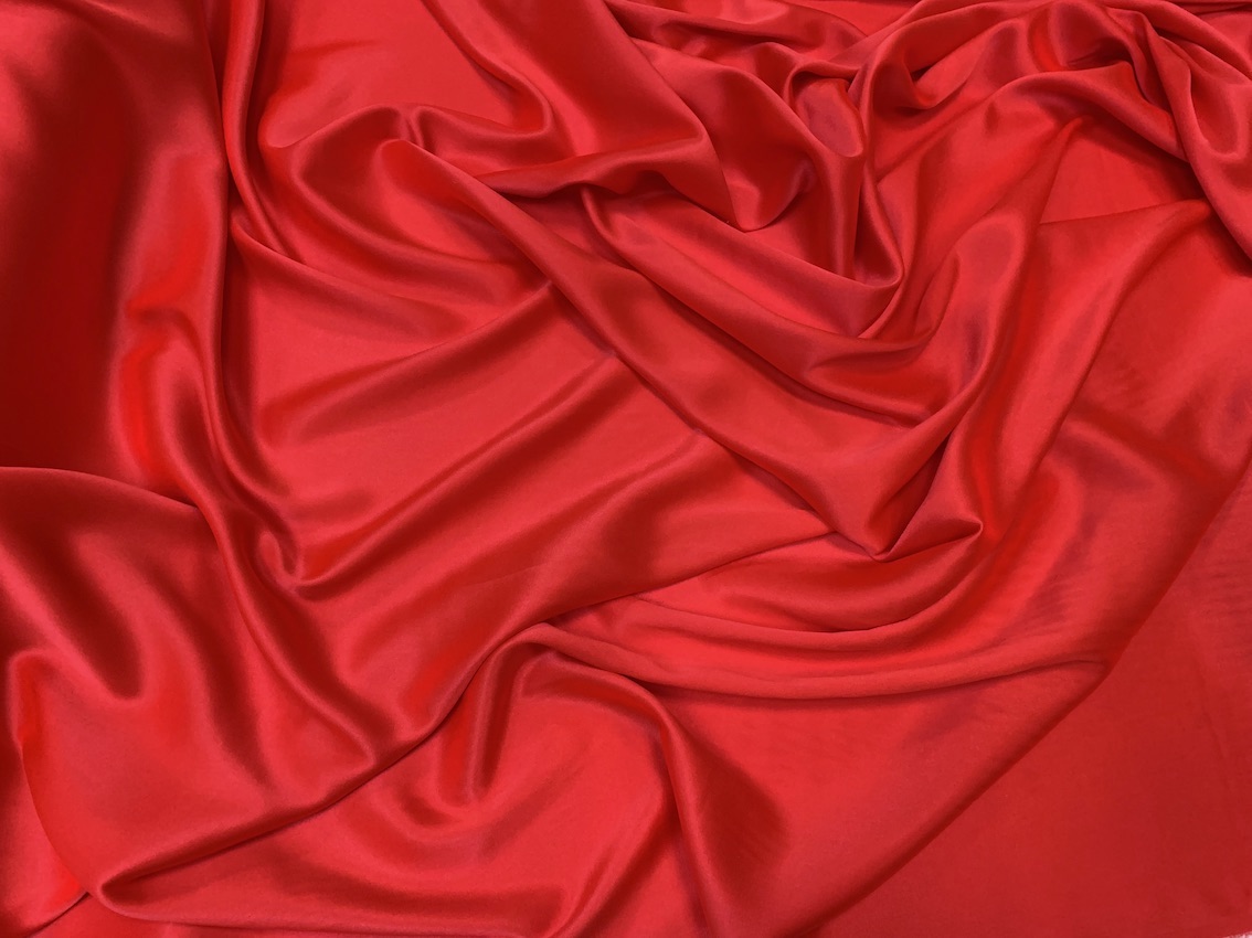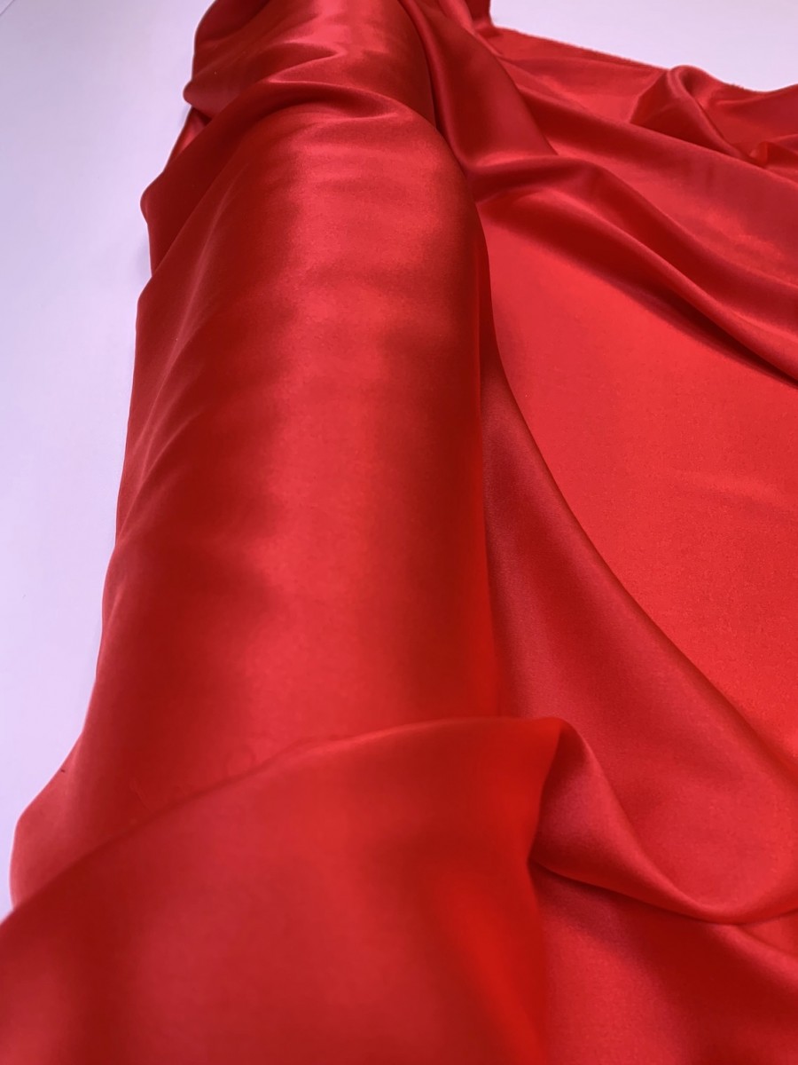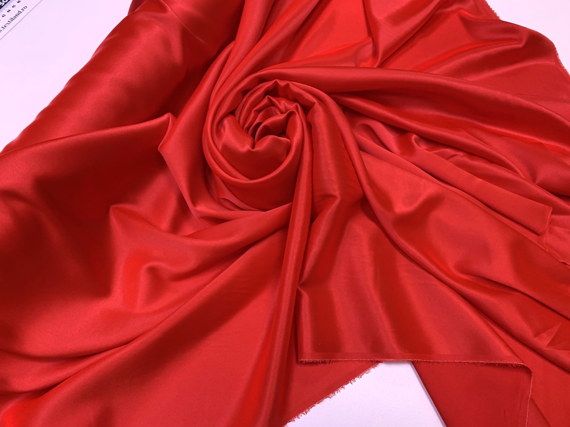 Satin mătase naturală cu elasticitate roșu de înaltă calitate.