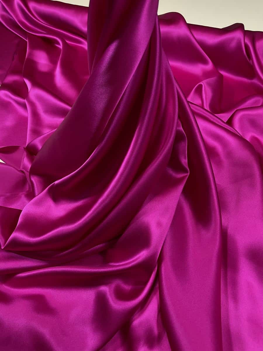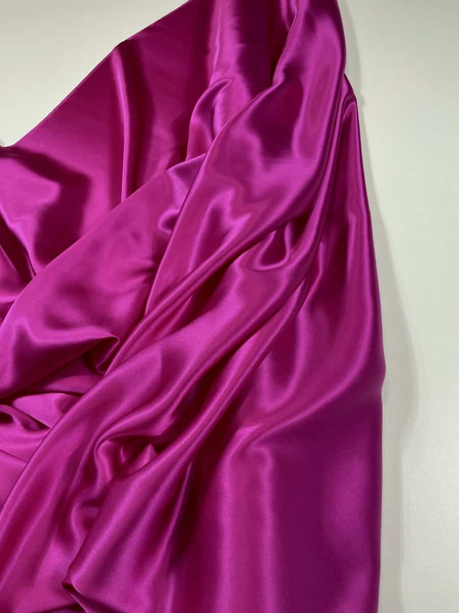 Satin mătase naturală cu elasticitate roz fuxia de înaltă calitate.